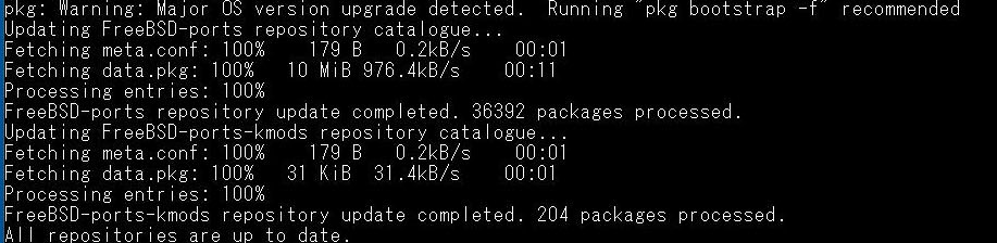 pkg upgrade完了後、もう一度freebsd-update installを実行します。